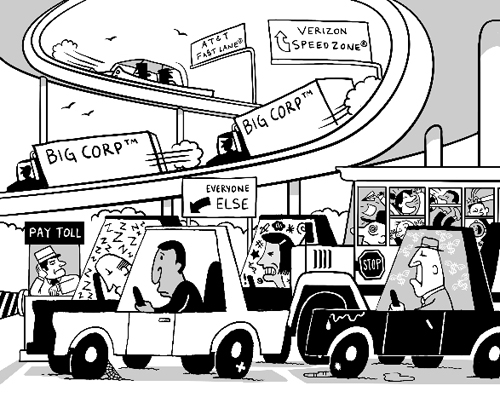 AT&T, Verizon, Time Warner, and Comcast want to put a stop to this free exchange of information by charging companies like Netflix, Youtube and Facebook a “toll fee” for data to be passed.